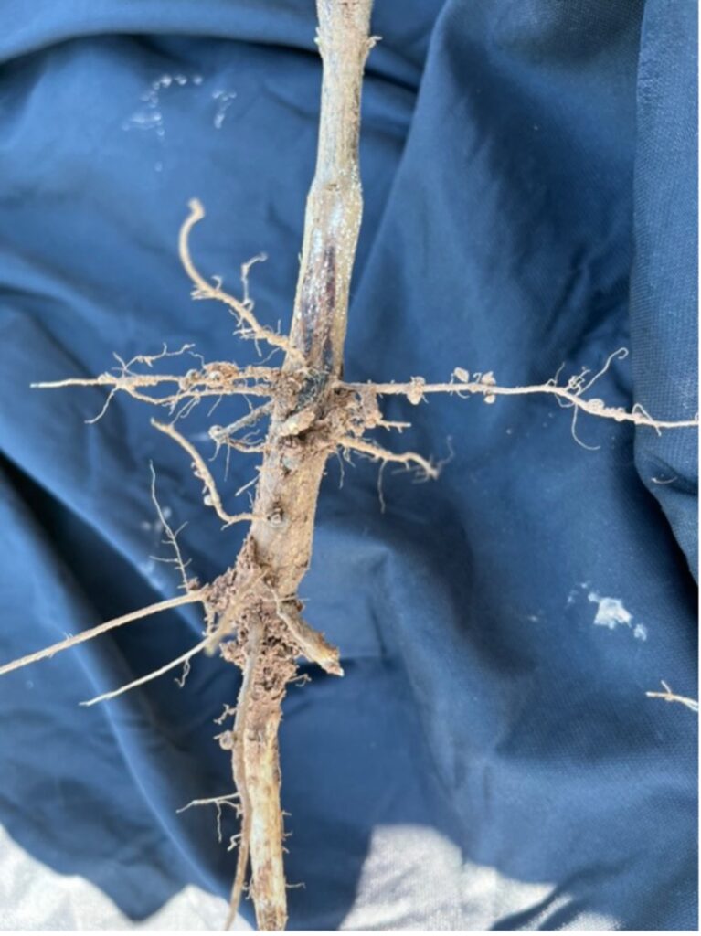 This is allowing the team to begin understanding the mechanism by which the fungus infects the roots, the genetic tools used by the pathogen to infect the roots, the genetic tools the plants used to resist the infection and identify germplasm potentially resistant to Xylaria necrophora. These refined inoculation procedures are also allowing the team to evaluate control measures that may limit infection.