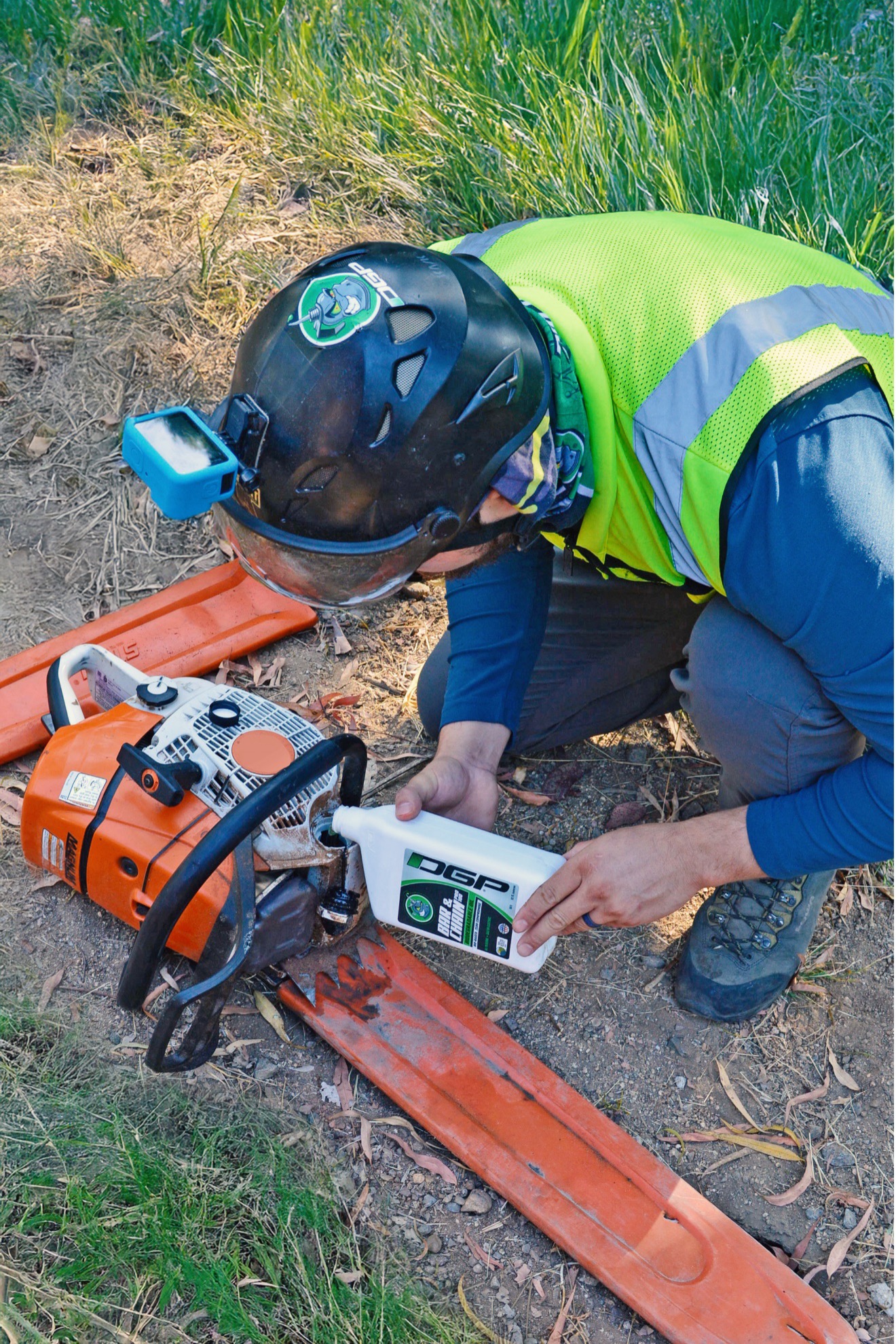 Renewable, biodegradable soy has potential to replace millions of gallons of petroleum in lubricants for tools like chainsaws. Photo: Dynamic Green Products
